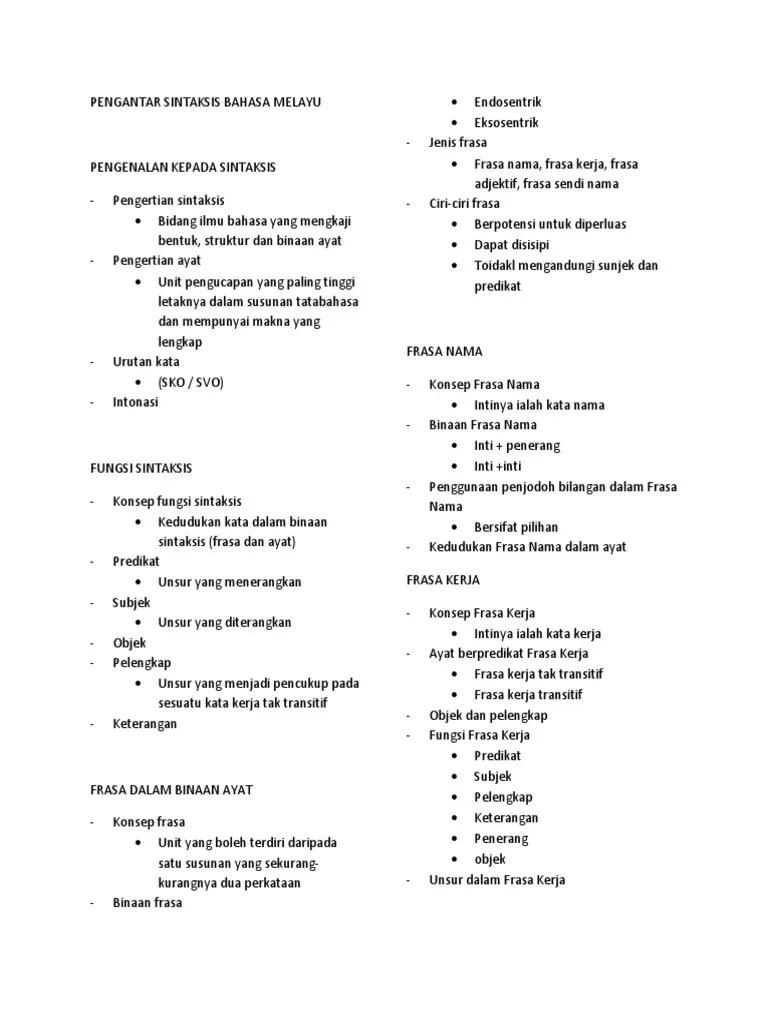 Frasa adjektif sebagai keterangan • frasa adjektif boleh juga hadir selepas frasa kerja, iaitu menjadi. Kata kerja transitif • boleh dipasifkan • frasa nama (fn) sebagai objek • tidak dapat berdiri sendiri tanpa objek kata kerja transitif aktif memetik . Dalam setiap frasa ada perkataan yang yang .